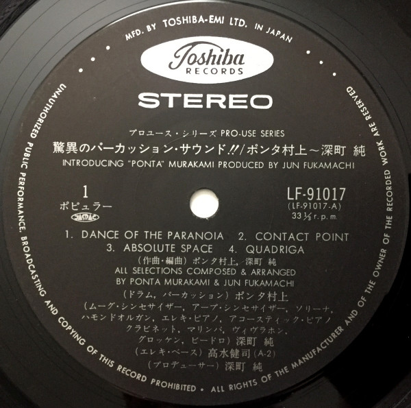 ãƒãƒ³ã‚¿æ‘上〜深町純 " Dance Of Paranoia " 1976 驚異ã®ãƒ‘ーカッションサウンド!!